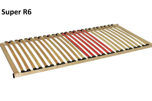 Lamelový rošt s předpjatými lamelami. Rám roštu je vyroben z vrstveného (větší pevnost) bukového dřeva. Lamely jsou ze dřeva sibiřské břízy. Rošt má ve střední části použity zesílené lamely i pouzdra. Ty jsou nejen výkyvné, ale také zvýšené, takže s matrací mnohem lépe spolupracují. Středový stabilizační popruh zabrání prolomení lamely při extrémním bodovém zatížení. Rám i lamely roštu jsou obaleny karbonovou fólií, která dřevěné části lépe chrání proti atmosférickým vlivům a zároveň je šetrnější k potahu matrace. nepolohovatelný, zóna R6 Pouzdra: výkyvná, gumová, zdvojená.